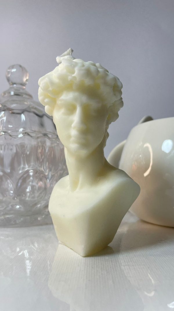 Nuestra vela «David de Miguel Ángel» está vertida a mano y realizada con cera de soja 100% natural, además utilizamos mecha de algodón para una mejor combustión.