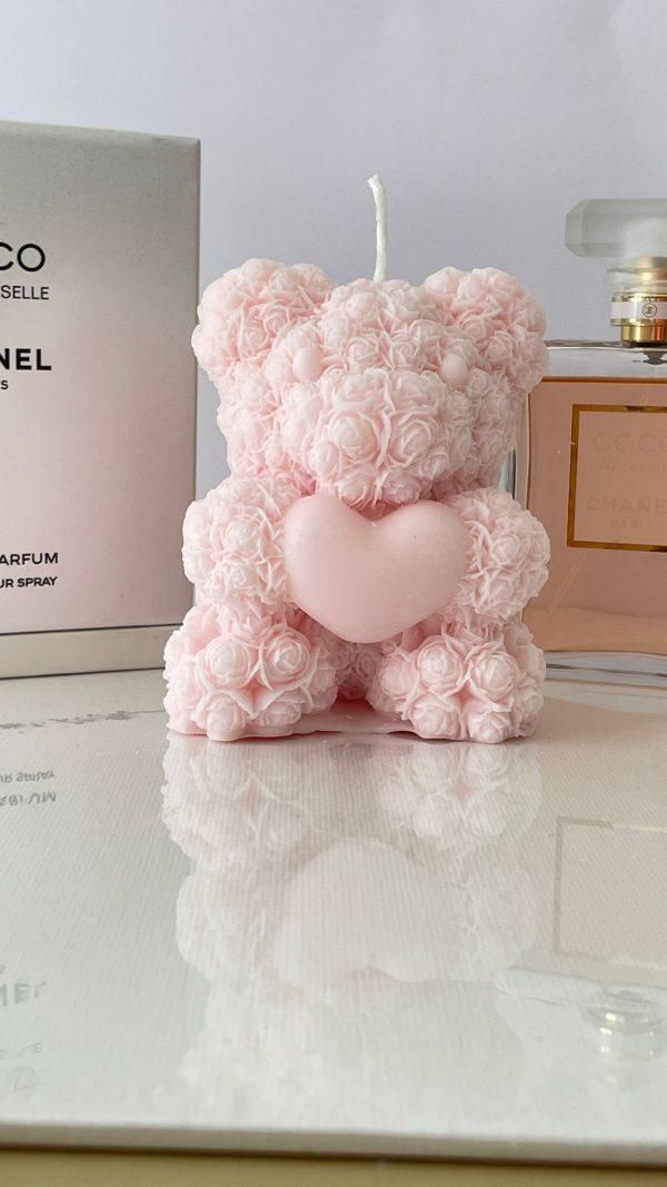 nuestra vela «oso corazón» está vertida a mano y realizada con cera de soja 100% natural, además utilizamos mecha de algodón para una mejor combustión. Ésta preciosa vela es una excelente opción para decorar cualquier espacio.