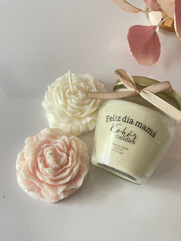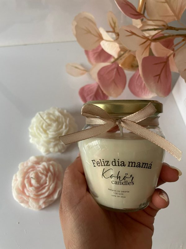 Nuestro pack «feliz día mamá» consta de dos peonias tal como las vez en las fotos; aromatizadas y, una vela tradicional en envase de 130 grm, aromatizada con la misma fragancia de las peonias.