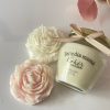 Nuestro «pack feliz día mamá» consta de dos peonias tal como las vez en las fotos; aromatizadas y, una vela tradicional en envase de 130 grm, aromatizada con la misma fragancia de las peonias.
